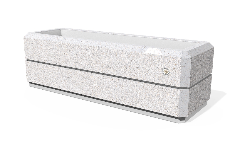 Elegantna i niska pravokutna žardinijera izrađena od visokoučinkovitog betona i prirodnog agregata. Beton je armiran i ojačan vlaknima. Agregat je izrađen od prirodnog mramora ili granita specifičnih dimenzija i mogućnosti kombinacije boja. Površine su reljefne i obrađene posebnim zaštitnim premazom. Proizvod ima onaj osnovni oblik, kako standardan, tako i modni trend koji je preživio.