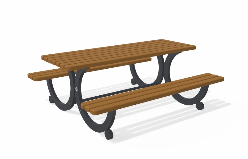 Model koji kombinira praktičnost, ljepotu i stabilnost. Kombinacija certificiranog drva i visokokvalitetnog metala. Ester-epoksi cink temeljni premaz i premaz u prahu štite metal od korozije i povećavaju njegovu učinkovitost. Na daske se nanosi poseban premaz koji ih štiti od agresivnih vremenskih uvjeta i produljuje im vijek trajanja. Elementi koji spajaju pojedine strukture izrađeni su od nehrđajućeg čelika. Metalne i drvene komponente imaju različite kombinacije boja. I sjedala i ploča stola dizajnirani su sa zavojima u kutovima za udobnost i sigurnost. Praktičan i moderan model, nudi različite mogućnosti unutarnjeg i vanjskog opremanja. Lako i brzo prenosiv zbog svoje male težine, čini ga prikladnim za svaki dom ili vrt. Metalni stol za piknik dostupan je i s mogućnošću pričvršćivanja na pod, ali samo na zahtjev klijenta. Elegantno rješenje za opremanje izletišta u planinama, kolibama, nacionalnim parkovima, skijalištima i morskim odmaralištima, plažama.