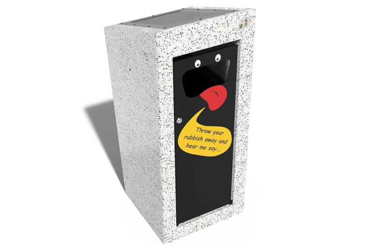 Opremljena senzorom pokreta i glasovnim uređajem, kanta reagira kada se otpad odloži reprodukcijom personaliziranih fraza ili unaprijed postavljenih poruka. Ova značajka ima za cilj motivirati ljude na zabavan način da odlažu otpad na prava mjesta, pomažući u zaštiti okoliša za buduće generacije.