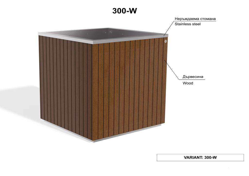 Metalna žardinjera model 300 predstavlja vrhunac luksuza i stila. Kombinacija visokokvalitetne konstrukcije od nehrđajućeg čelika s vertikalnim drvenim elementima izrađenim od ekološkog drva Resysta® stvara proizvod koji je bezvremenski. Razvijeno u Njemačkoj, ovo drvo dolazi s 15-godišnjim jamstvom protiv pucanja i raslojavanja, koje osigurava proizvođač drva. Žadilica je također dostupna u varijanti s tradicionalnim drvom smreke. Vrhunski zaštitni premazi na drvu jamče dugotrajnu izdržljivost. Ova jedinstvena žardinjera pravo je prijestolje za vaš botanički svijet. S visinom od 96 cm nudi dovoljno prostora za više biljke, poput drveća ili velikog grmlja. Ovaj model idealan je za velike vanjske i unutarnje prostore gdje će ostaviti dojam i prepoznatljiv trag.